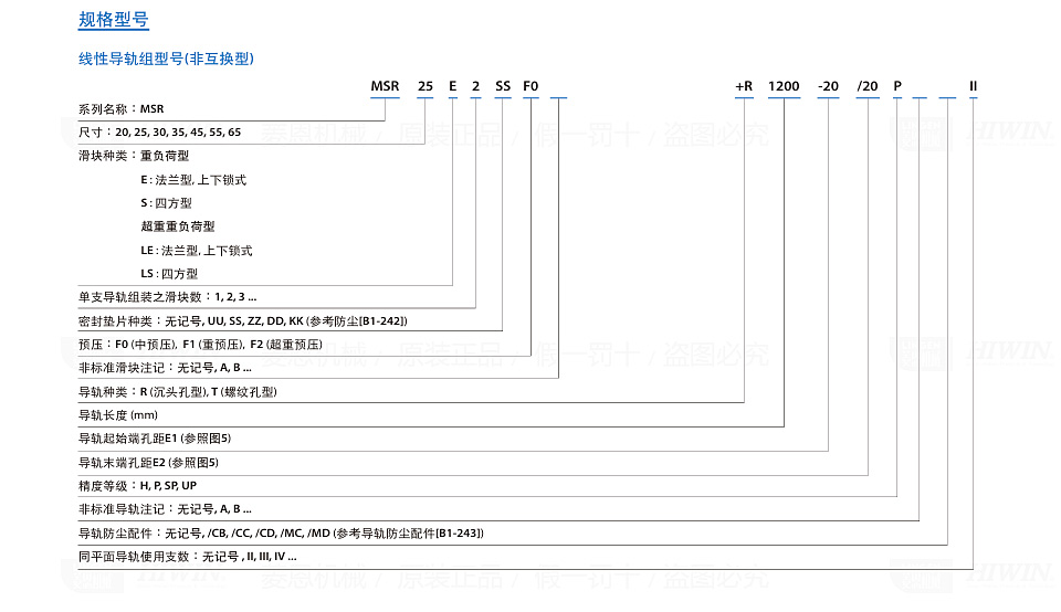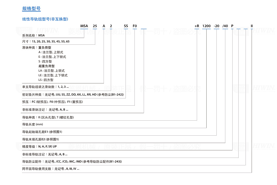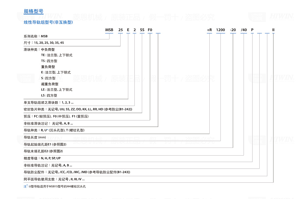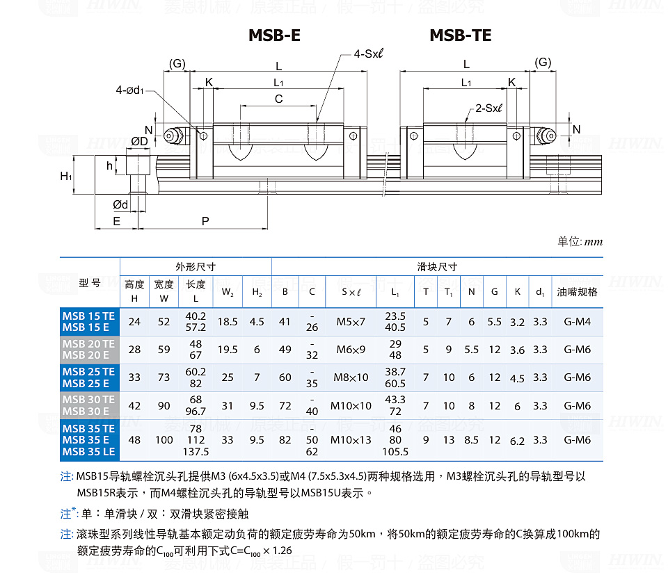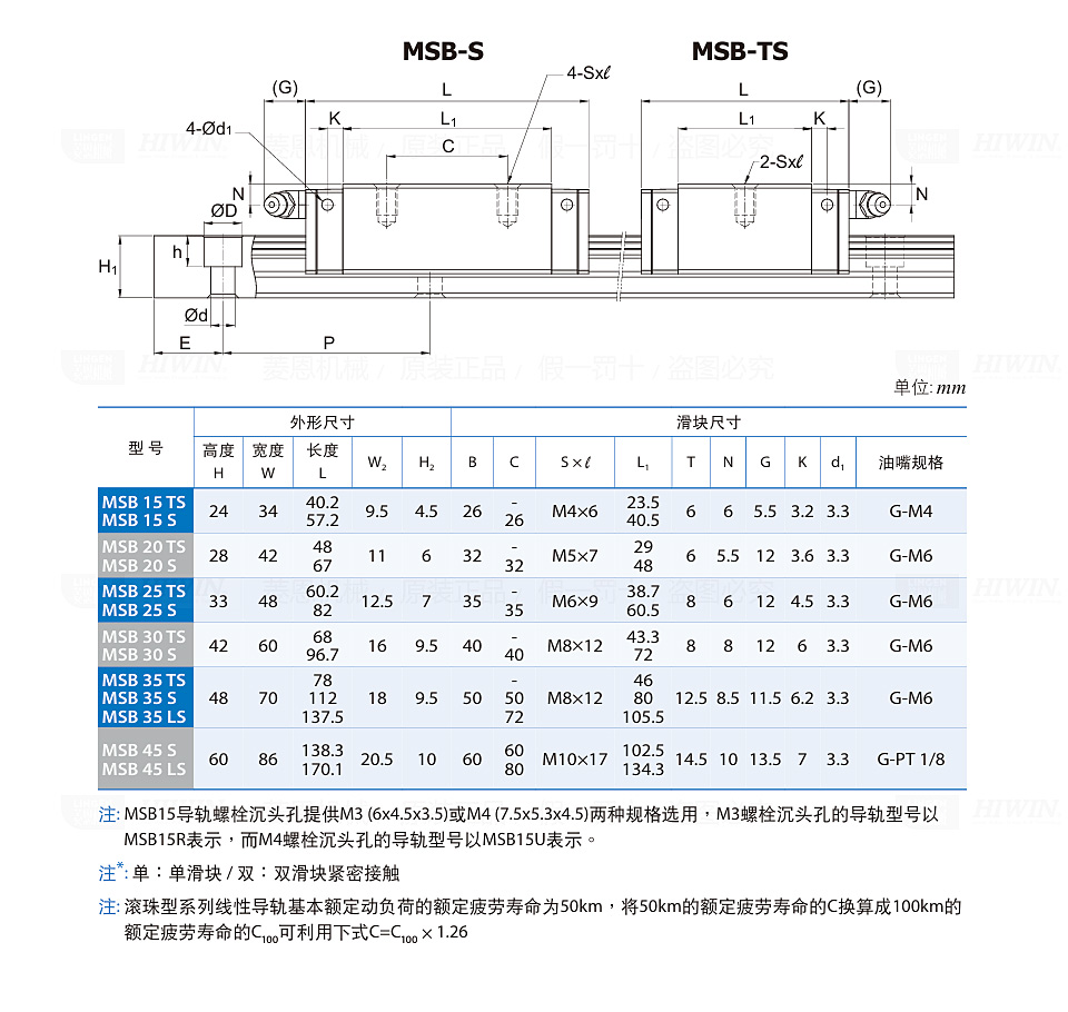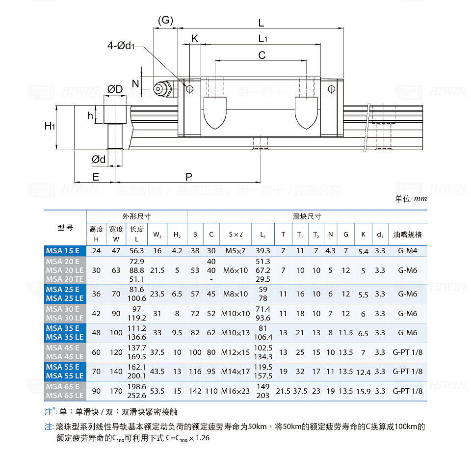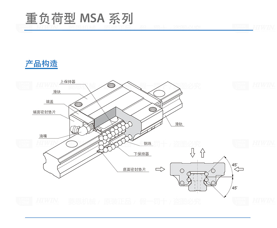 PMI/银泰滚珠直线导轨 摩擦阻力小的特性,对设备的驱动马力需求低,节省能源效果大,尤其运动磨耗小,温升效应低,可同时实现机械小型化与高速化的需求。 定位精度高可以实现μm级的定位精度。 低摩擦阻力滚动摩擦阻力可减小至滑动导轨摩擦阻力的1/20~1/40 。 高负荷可同时承受径向、反径向与横方向的负荷。 应用范围 适用于一般工具机、产业机械、电子产业等各项设备。 简介MSAMSBMSR 线性滑轨的安装只要在铣削或研磨加工的安装面上,以一定的组装步骤,即能重现线性滑轨的加工精密度,可降低传统铲花加工的时间与成本。并且其可互换之特性,可以将滑块任意配装在同型号的滑轨上,同时又保持相同的顺畅度与精密度,机台组装最容易,维修保养最简便。 尺寸参数 尺寸参数 尺寸参数